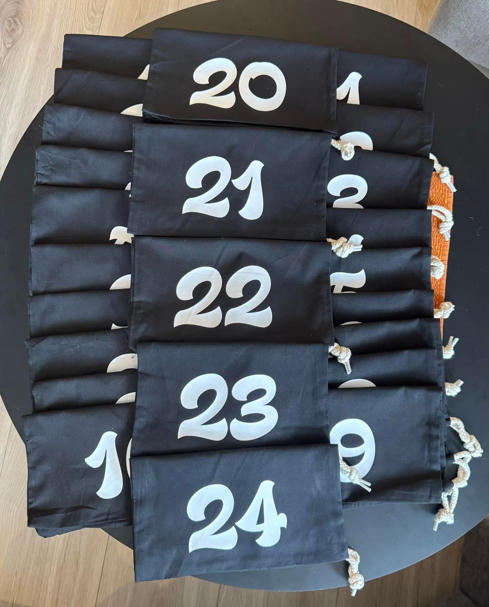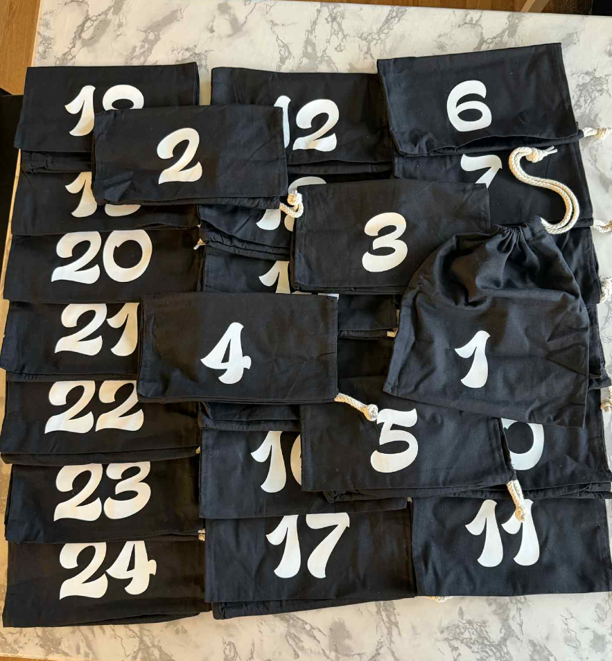 24 stk adventskalender poser, selges som et sett.