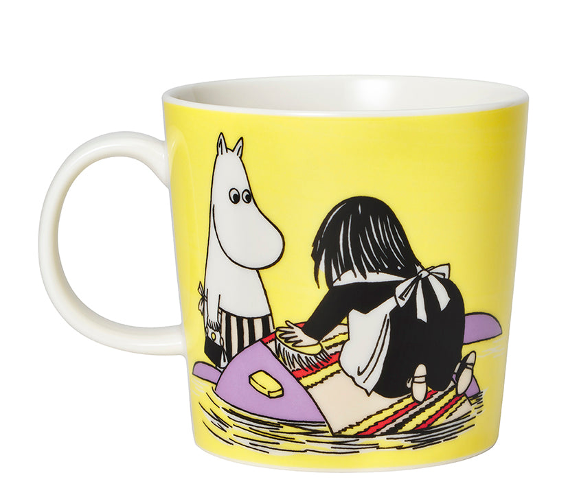 Hver kopp har sitt eget Mummimotiv, inspirert av Tove Janssons univers: fra Mummitrollet som tegner i sanden, til Lille My som slapper av i hengekøya. Illustrasjonene er fargerike, detaljerte og fulle av små historier – og gjør koppen til en liten fortelling i seg selv.
